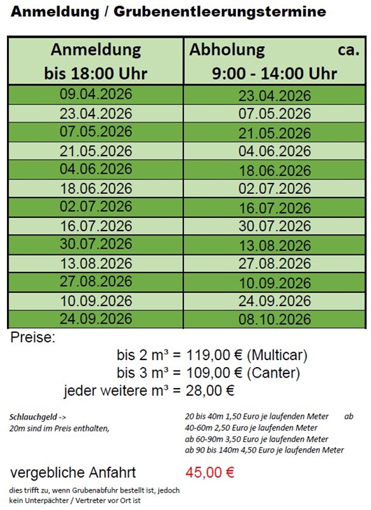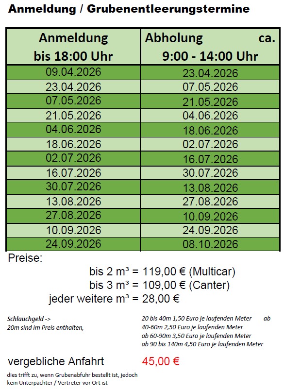 Achtung: "Anträge" zur Grubenentleerung sind nur in den Briefkasten an der "Montagsbaude" einzuwerfen!